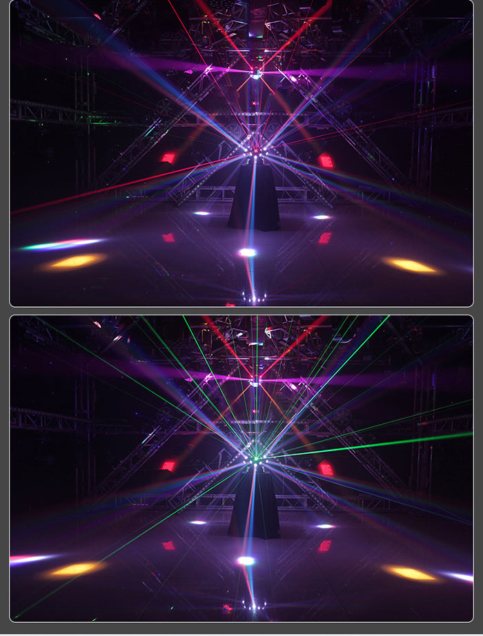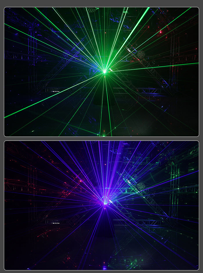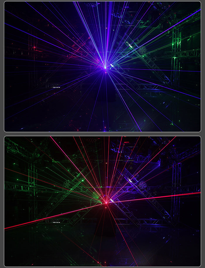 Light source: 10W*18pcs RGBW LED lamp beads + red/green/blue laser