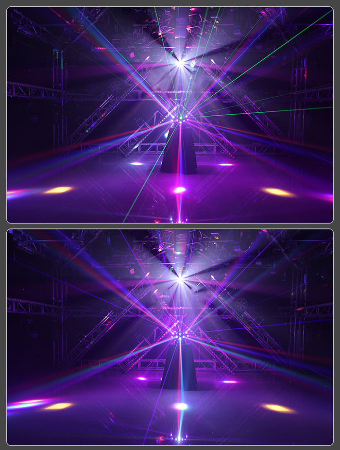 Light effect: red, green, blue and white + mixed color beam + red, green and blue laser beam